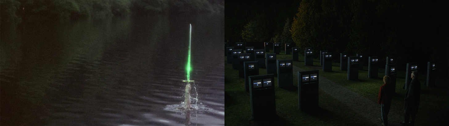 John Boorman’s underappreciated but enormously influential Excalibur is an epic ballad of a film, prizing mythologically powerful sounds and images over conventional plot and character work. When it comes to biopics, I’m no fan of the “cradle to grave” approach, which seeks to compress the entire life of a historical figure into a film’s runtime. At the risk of holding a double standard, though, I love Excalibur precisely because of the way it follows King Arthur not just from cradle to grave but from conception to afterlife. As it barrels through three generations of Arthurian legend, starting with Arthur’s father and ending with his son, the film’s very brevity takes on a kind of Solomonic poignancy. In two brief hours, we see how sins reverberate through family lines for decades, and the glory of a human kingdom starts to feel transient and ephemeral compared to the land that abides forever.