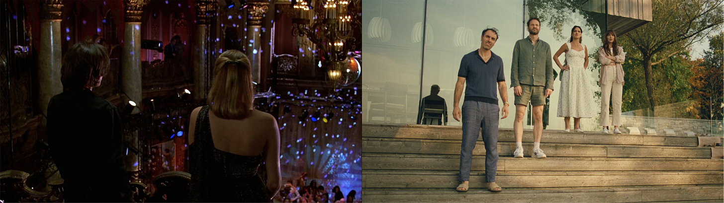 It’s only in retrospect that the year’s best comedy suddenly seems very Stillman-esque. Writer Kyle Marvin and writer/director Michael Angelo Covino create and costar in Splitsville, their jointly conceived tragicomedy of errors about two friends, their wives, and what happens when an open marriage starts to seem like a good idea. It was billed as a ribald romcom for the progressive digital age; in fact it is very funny, and no less transgressive, but in something of a surprising direction. Instead of crude jokes Marvin and Covino tap into the deconstructive instinct of postmodernism and let it do its thing, so what unfolds is less a eulogy to liberation than a full-fledged moral nightmare of continually escalating absurdity. Highlights include what is maybe the best fight scene of the year (a great physical bit whose main punchline is its refusal to end), and a truly inspired time-hopping montage which follows a chain of rejected suitors metastasizing into their own fraternal polycule. In Homer Odysseus slays his wife’s suitors; here he befriends them and they all just kinda chill. We have come full circle on western civilization, and Splitsville has closed the loop.