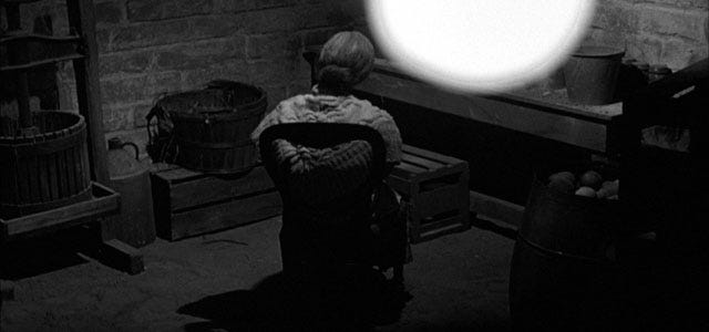 ”of this sort [which isn't] interested when you come in, but when your time is up,” a nearly kitschy foretelling of Marion's late night check-in at the Bates Motel, where the proprietor is far more interested in when Marion's “time is up.” Sam suggests Marion could simply turn her mother's picture towards the wall, an ironic suggestion given that the great reveal of Norma Bates in the third act begins with the old woman facing the wall.