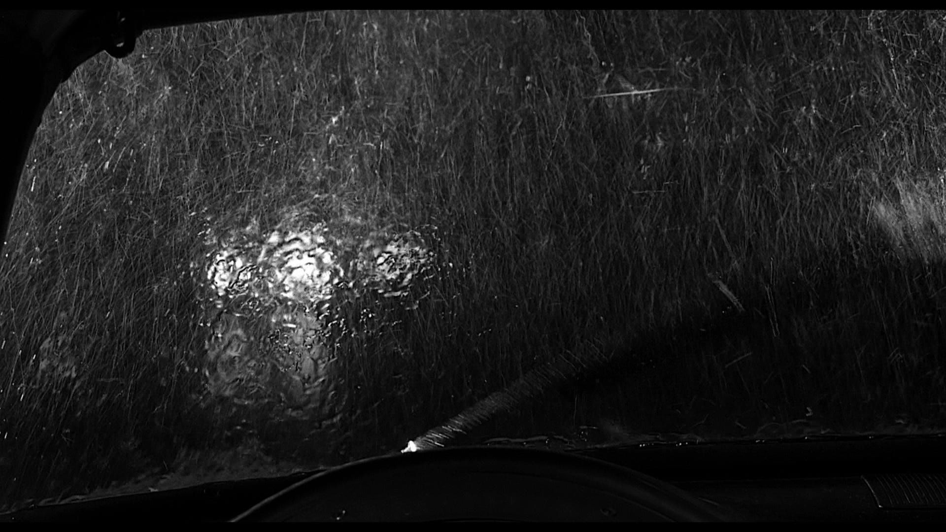 Marion does not have a plan. She steals forty grand then heads to her sister's house in Fairville, where the cops would go right after they checked her apartment (if there were cops involved). As she drives, a heavy rain falls and Hitchcock shows us numerous shots from Marion's point of view, water splashing down on the windshield and the wipers slicing it away.